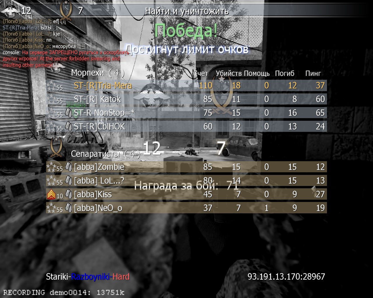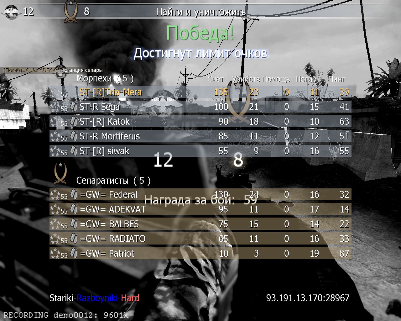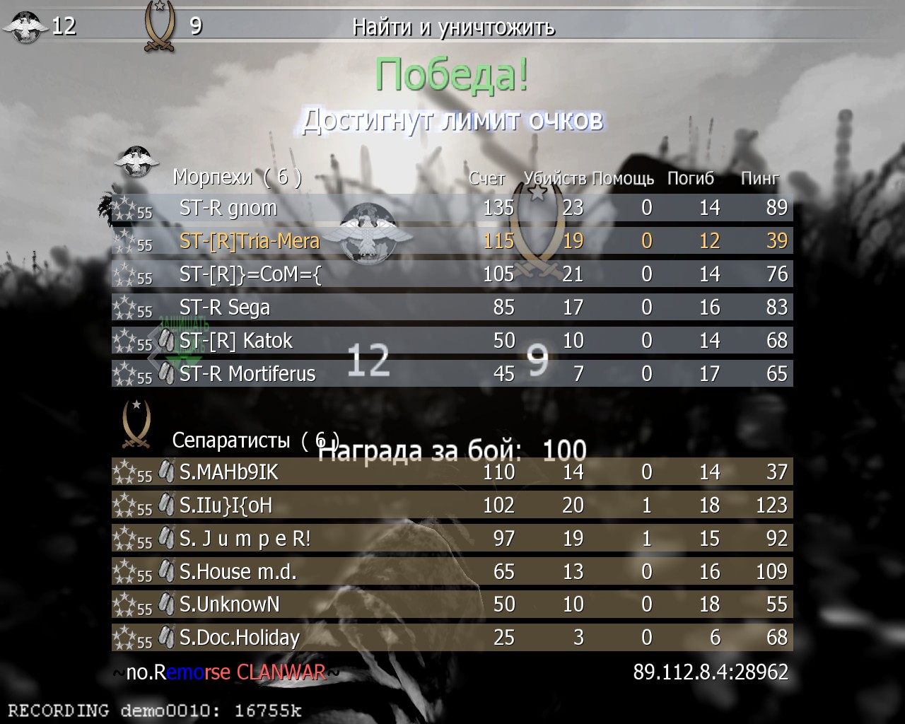 | Да это просто разгромный счет! Вы здорово постарались! Достойная победа! Поздравляю с возраждением славного клана ST-R!!!