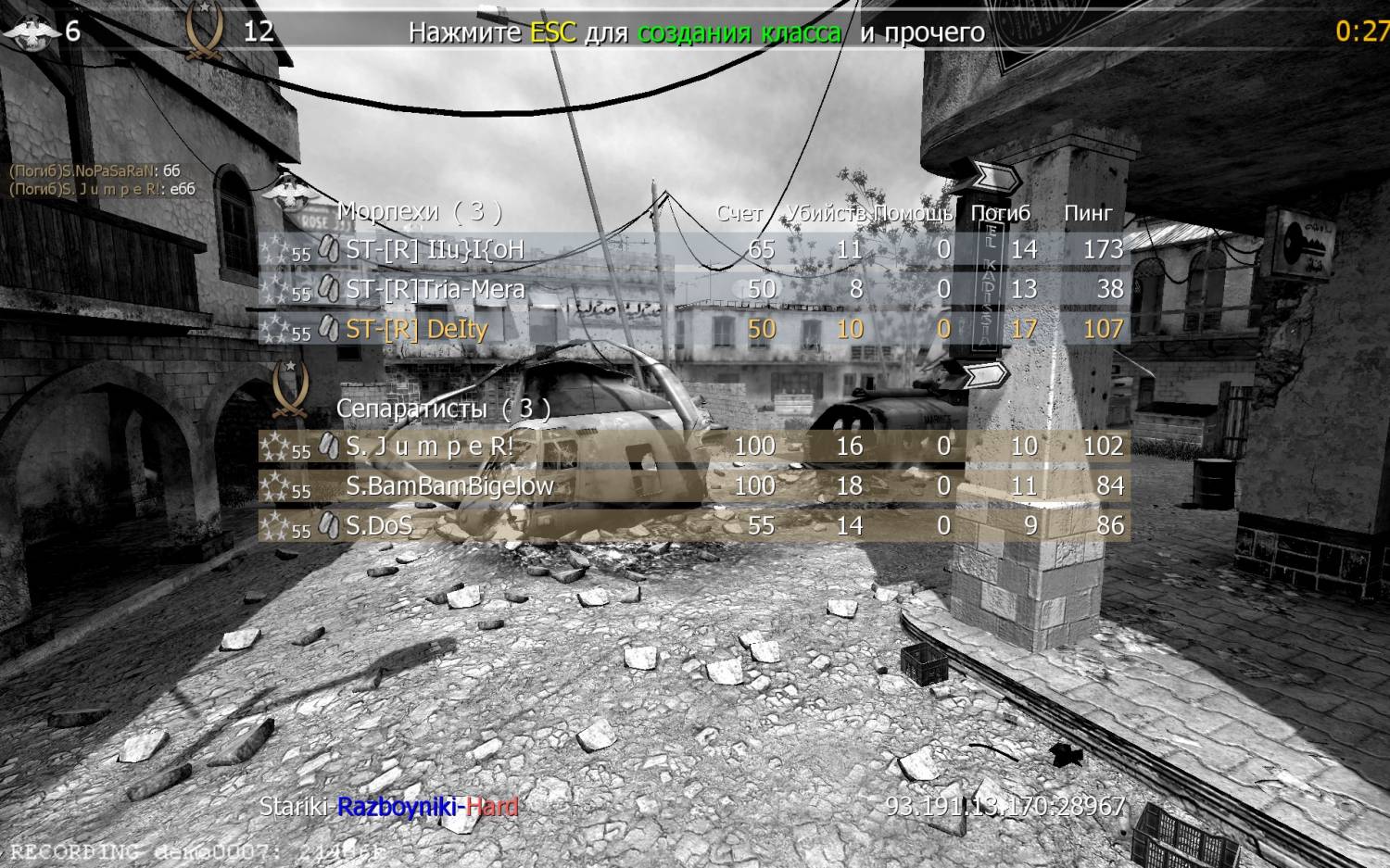 | Вчера играли с кланом Guards of War. Проиграли 2:1, но борьба была очень плотной. На первой карте "Крушение", нашей, мы проиграли, на второй "Станция", вражеской, мы победили, и на третьей "Площадка", которую выбрал противник после победы на ножах мы проиграли. Но ничего, опыт получен, победы обязательно будут!